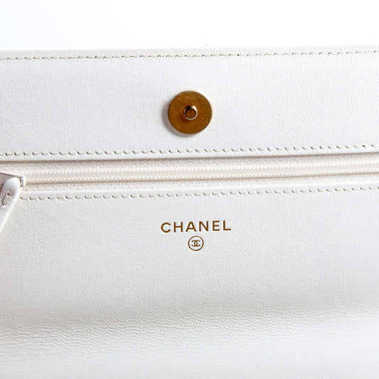 Chanel 19 Phone Pouch With Chain Iridescent White GHW