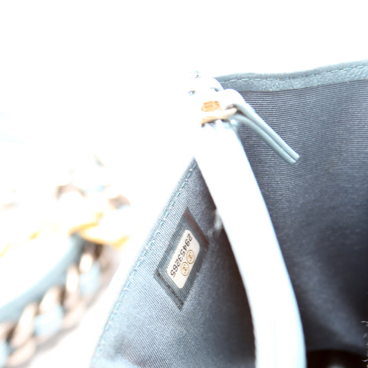 Chanel 19 Round Clutch With Chain Lambskin Light Blue