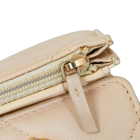 CHANEL 1986-1988 Beige Lambskin Border Flap Medium