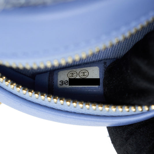 Chanel 19 Round Clutch With Chains Sequins Light Blue Multicolour Hardware