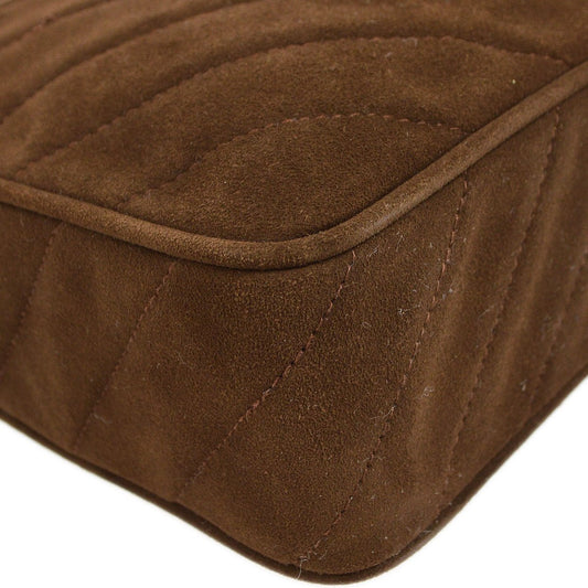 CHANEL 1991-1994 Brown Suede Diagonal Camera Bag Small