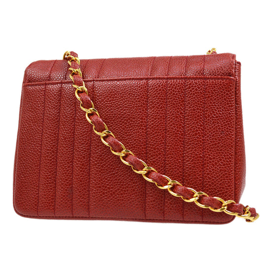 CHANEL 1991-1994 Vertical Classic Square Flap 17 Red Caviar