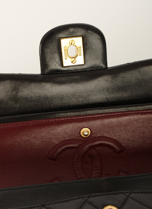 CHANEL 1991-1994 Border Flap Medium Black Lambskin