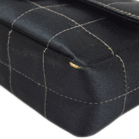 CHANEL 2003-2004 Camellia Choco Bar Chain Shoulder Bag Black Satin