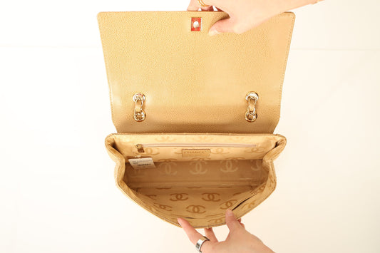 CHANEL 2003-2004 Beige Caviar Medallion Tote