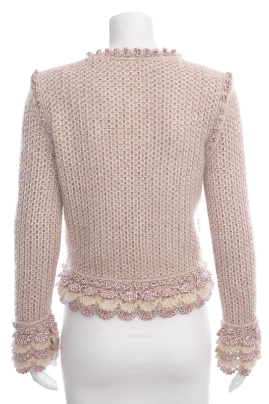 Chanel 2004 Fall Pink Shimmer Button Up Sweater SZ 38
