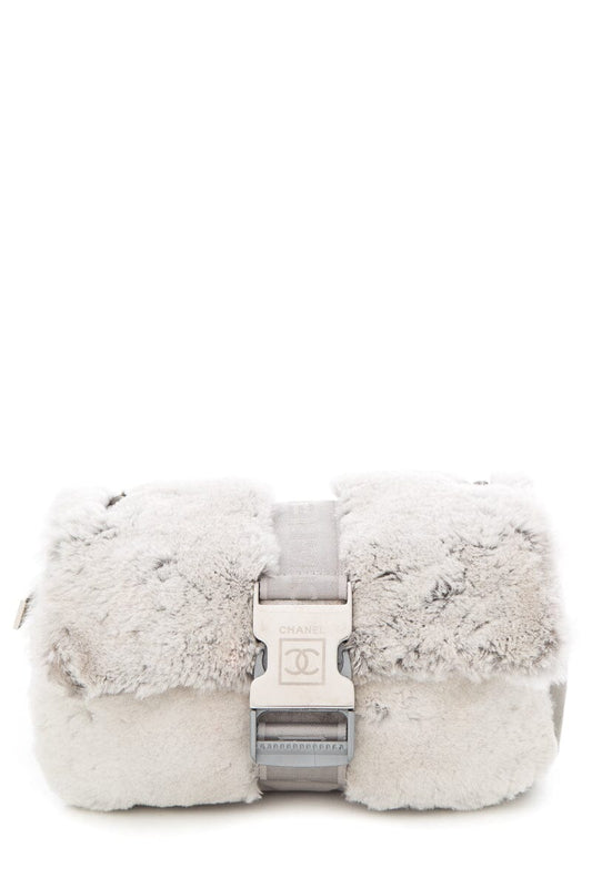 Chanel 2005/06 Grey Cross Body Rabbit Fur & Silver Seatbelt Buckle Handbag