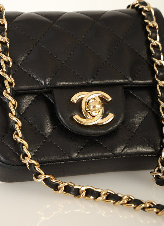 CHANEL 2007 Black Lambskin Perforated Classic Flap Micro