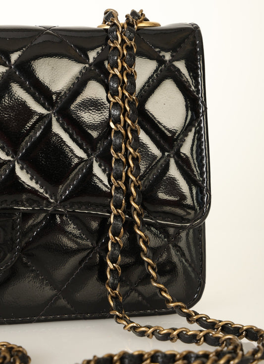 Chanel 2011 Patent Leather East West Wallet on Chain
