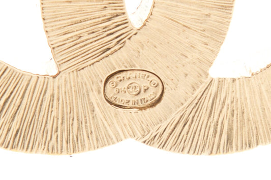 Chanel 2013 Cream Pearl & Yellow Studded Logo Cuff Bracelet