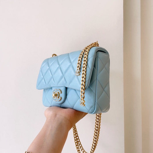 Chanel 2022 Tiffany Blue Lambskin Leather Small Trendy CC Top Handle Flap Bag