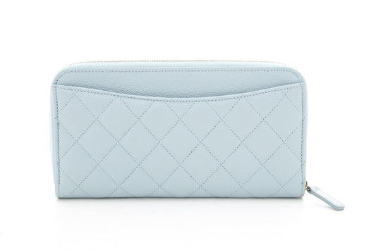 Chanel 2023 Metallic Blue Calfskin Leather Classic Zipped Coin Purse