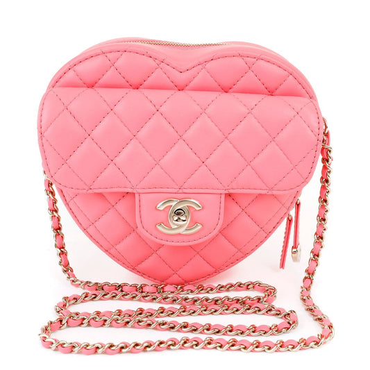 Chanel 2022 Pink Lambskin Heart Bag w/ Gold Hardware