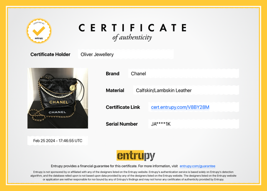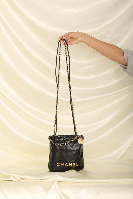 Chanel 2023 Black Shiny Calfskin Leather Mini Pearl Chanel 22 w/ Box