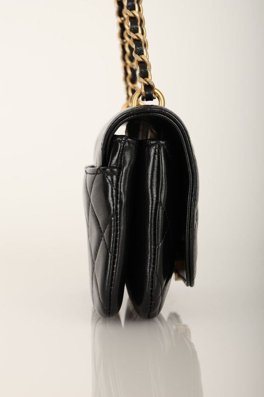 Chanel 2022 Black Lambskin Heart Mini Bag w/ Gold Hardware