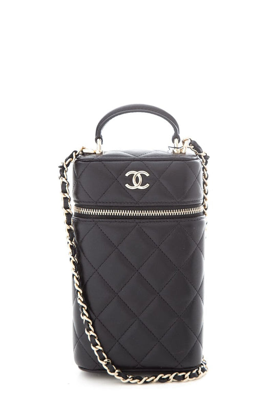 Chanel 2022 Black Lambskin Vanity Case Phone Holder Cross-Body
