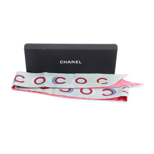 Chanel 2023 Pink CC Printed Silk Twill Slim Bandeau w/ Box & Receipt
