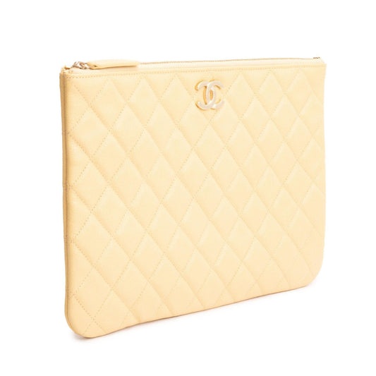 Chanel 2023 Yellow Quilted Calfskin Leather Medium O-Case Clutch