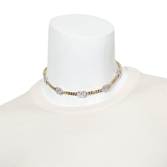 Chanel 2024 Gold Plated Strass CC Choker Necklace w/ Box