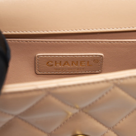 Chanel 21A Gold Crush Flap Bag Calfskin Beige GHW
