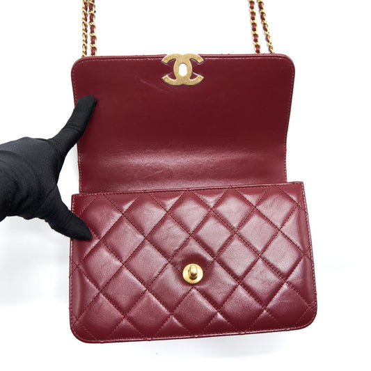 Chanel 21A Medium Gold Crush Flap Bag Calfskin NC635 Burgundy GHW (Microchip)