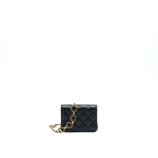 Chanel 21A Flap Card Holder With Chain Black GHW