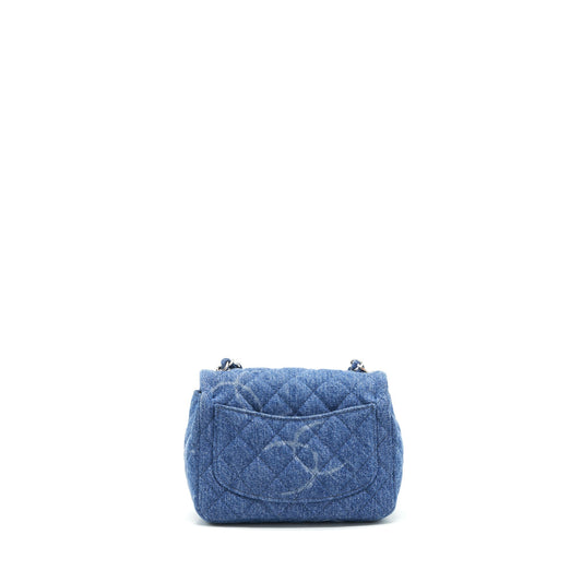 Chanel 20B Mini Square Flap Bag CC Print Denim Blue SHW