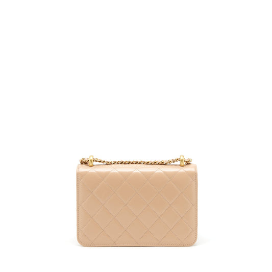 Chanel 21A Flap Coin Purse with Chain Beige GHW Calfskin