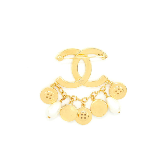 Chanel 20A Seasonal CC Logo Pearls And Button Brooch Gold