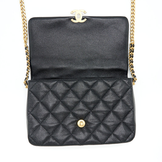 Chanel 22K Top Handle Messenger Bag Caviar Black Brushed GHW(Microchip)
