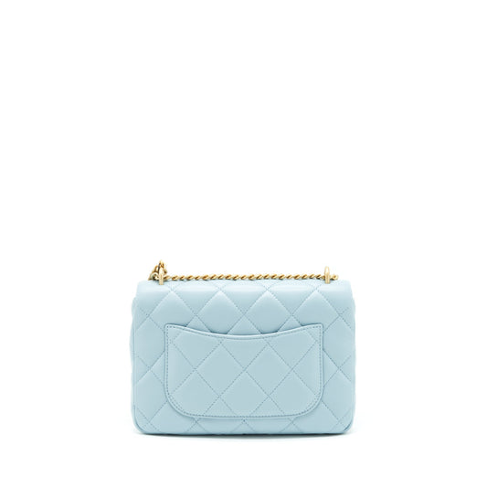 Chanel 22P Enemal Small Flap Bag Lambskin Light Blue Gold/Blue Hardware
