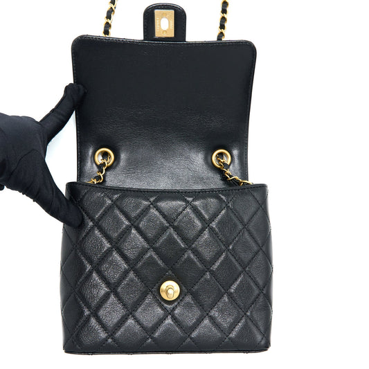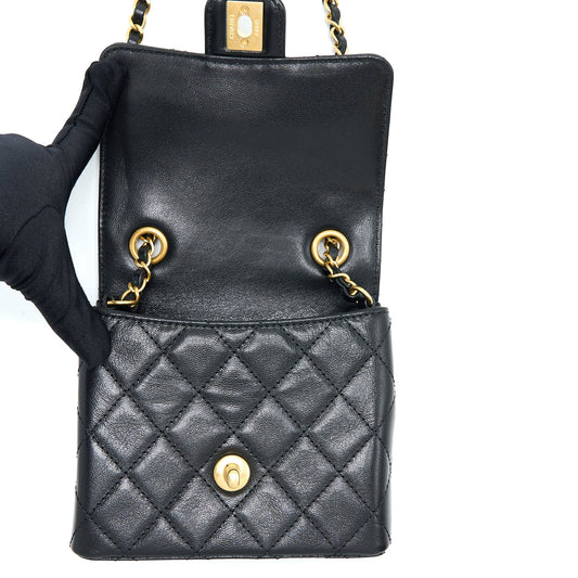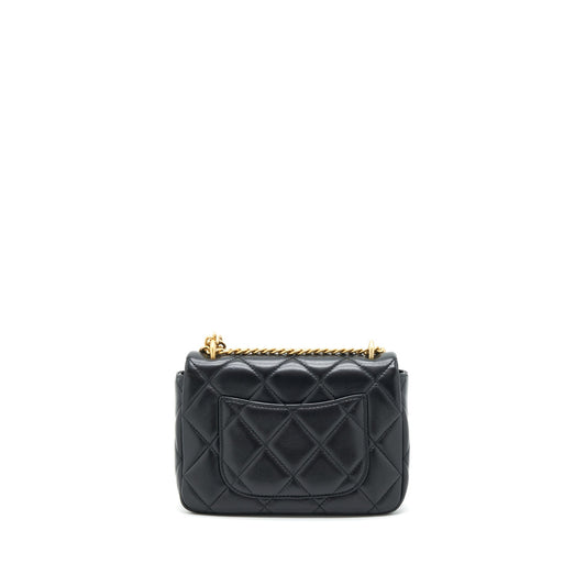 Chanel 22P Mini Square Flap Bag Lambskin Black Gold/Black Hardware (Microchip)