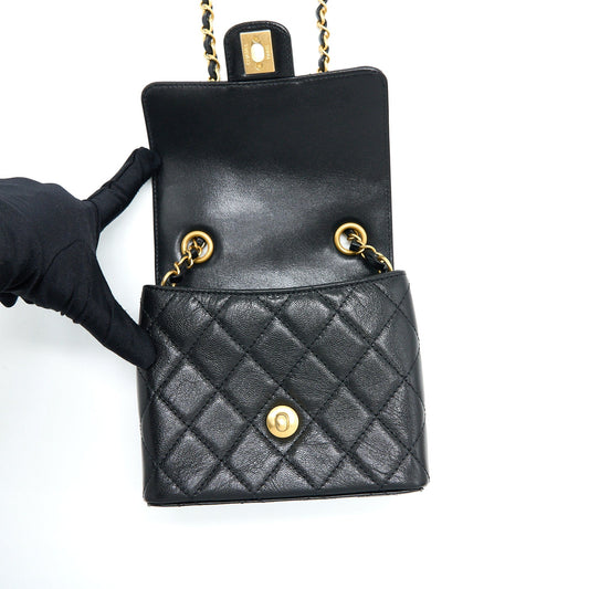 Chanel 22P lion charm Top Handle Mini Rectangular flap bag Lambskin Black LGHW (Microchip)