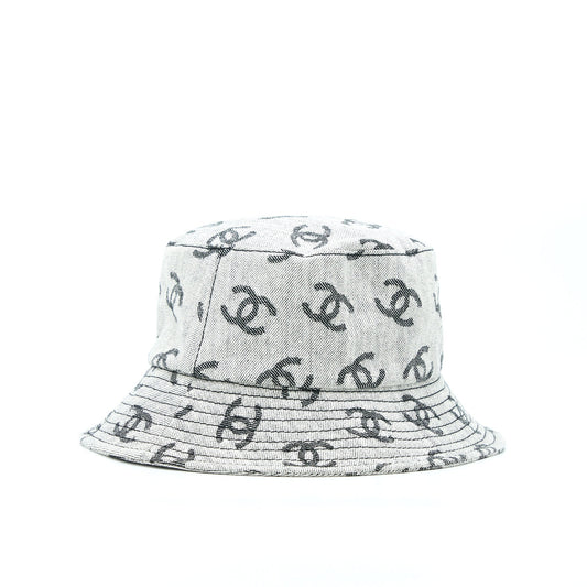 Chanel 22K Size M CC Logo Denim Bucket Hat Blue/Grey