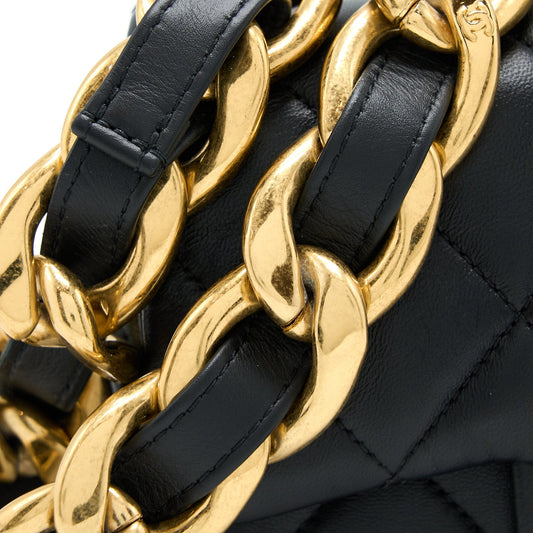 Chanel 22S Giant Chain Flap Shoulder Bag Lambskin Black GHW (Microchip)