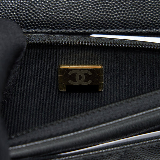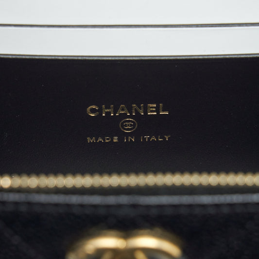 Chanel 22S Detailed Logo Wallet On Chain Caviar Black LGHW (Microchip)