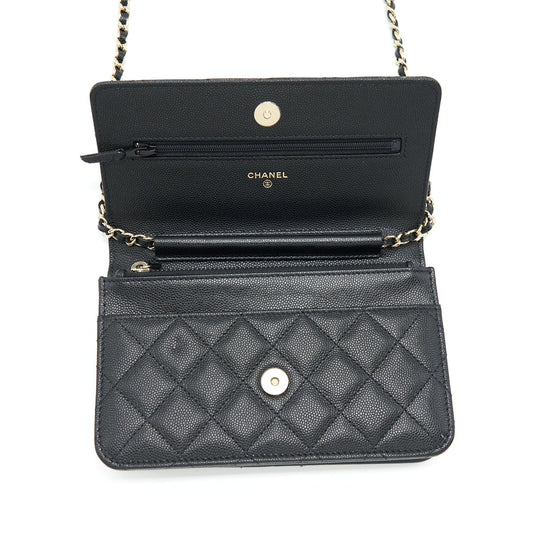 Chanel 22S Detail CC Logo Wallet On Chain Caviar Black LGHW (Microchip)