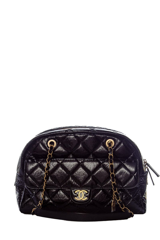 Chanel Black Grained Calfskin Bolt Bowler Bag