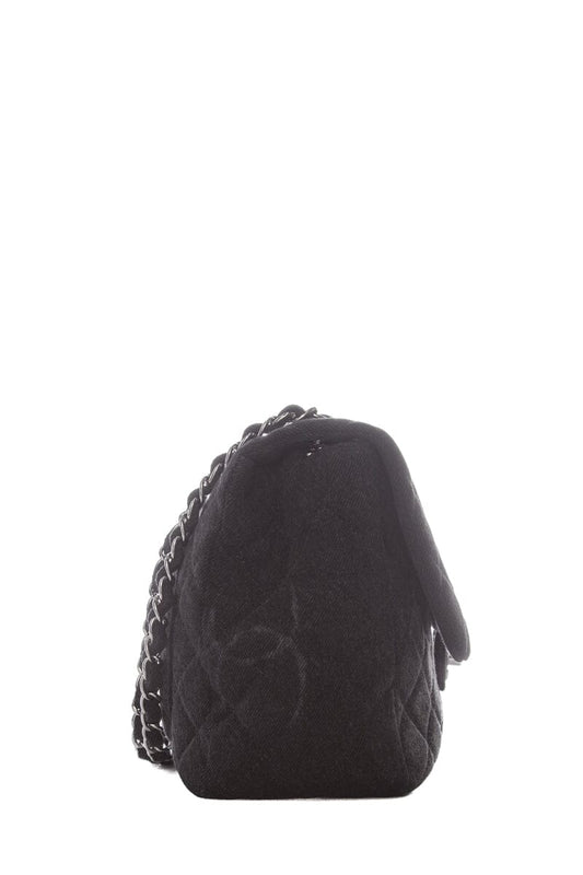 Chanel Black Denim Single Flap Jumbo SHW Handbag