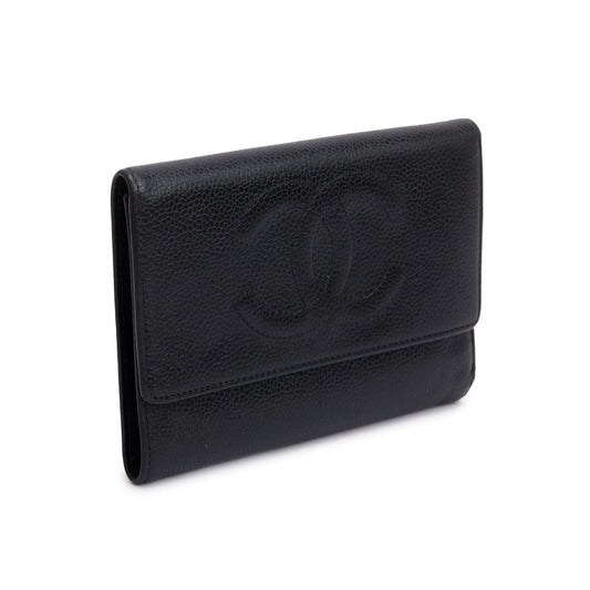 Chanel Black Caviar Leather Timeless Trifold Compact Wallet