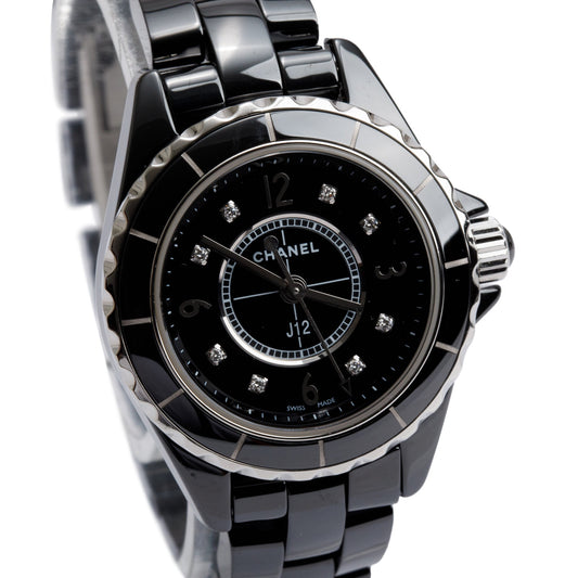 Chanel Black Ceramic 33 MM Diamond Dial J12 Quartz Watch H2569