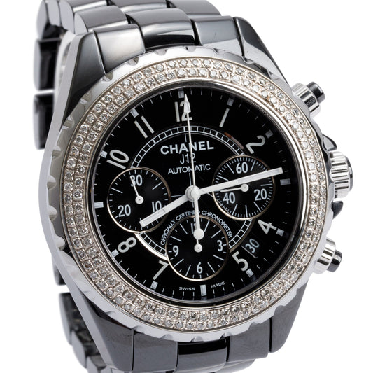 Chanel Black Ceramic Diamond Bezel Chronograph J12 41 MM Automatic Watch