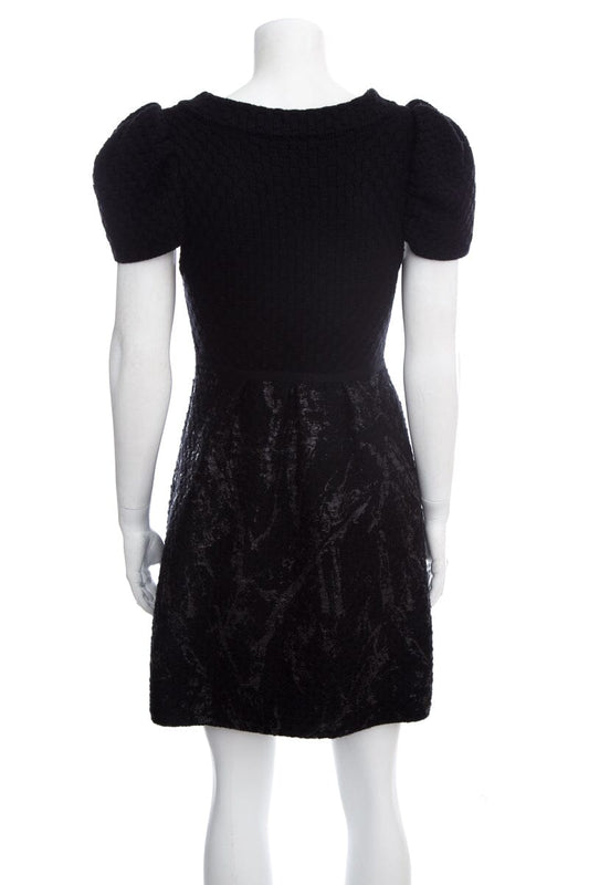 Chanel Black Cap Sleeve Foil Print Detail Dress SZ 34