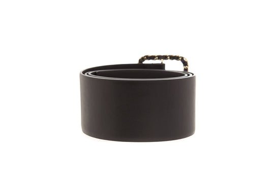Chanel Black Leather Woven Buckle Wide Belt SZ 95/38