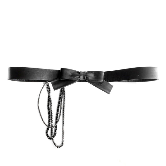 Chanel Black Leather Bow Belt with Chains size 95