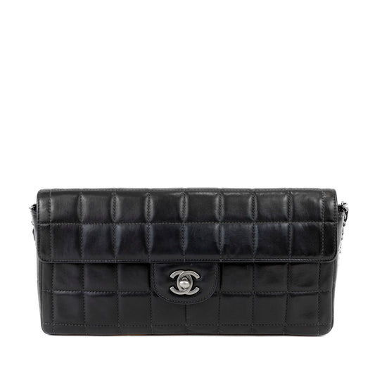 Chanel Black Lambskin Chocolate Bar Quilted East West Classic with Silver Hardware