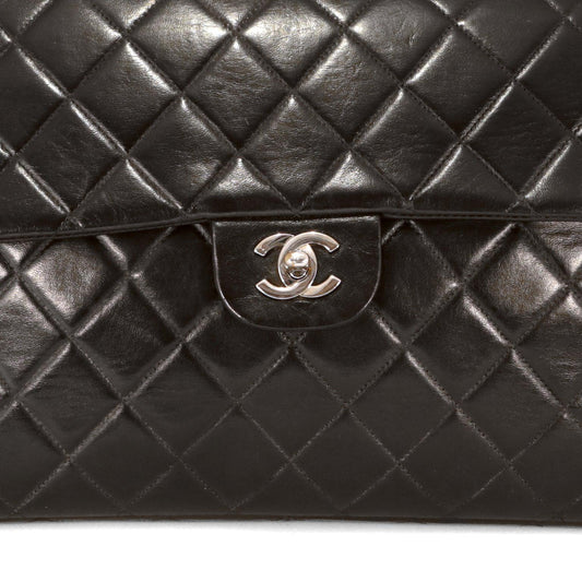 Chanel Black Lambskin Leather Classic Jumbo Single Flap Bag