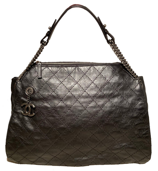 Chanel Black Lambskin Grand Cabernet Tote with Dripping Chains