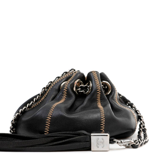 Chanel Black Leather Drawstring Backpack
