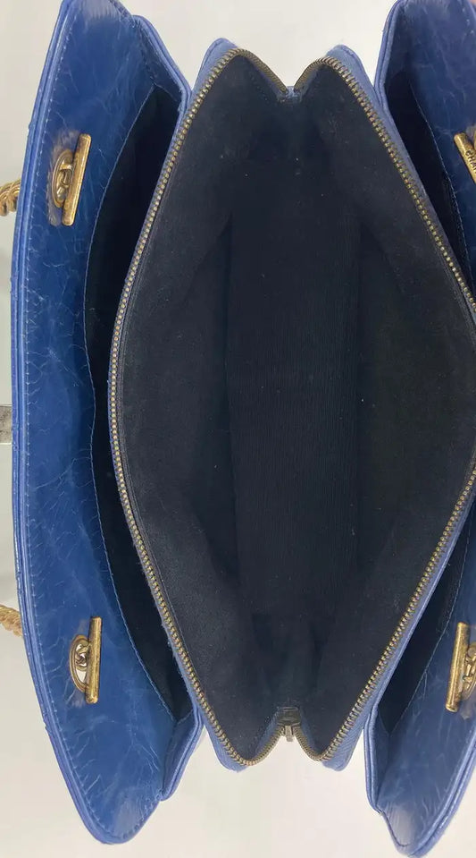 Chanel Blue Glazed Calfskin Quilted Tote Bag